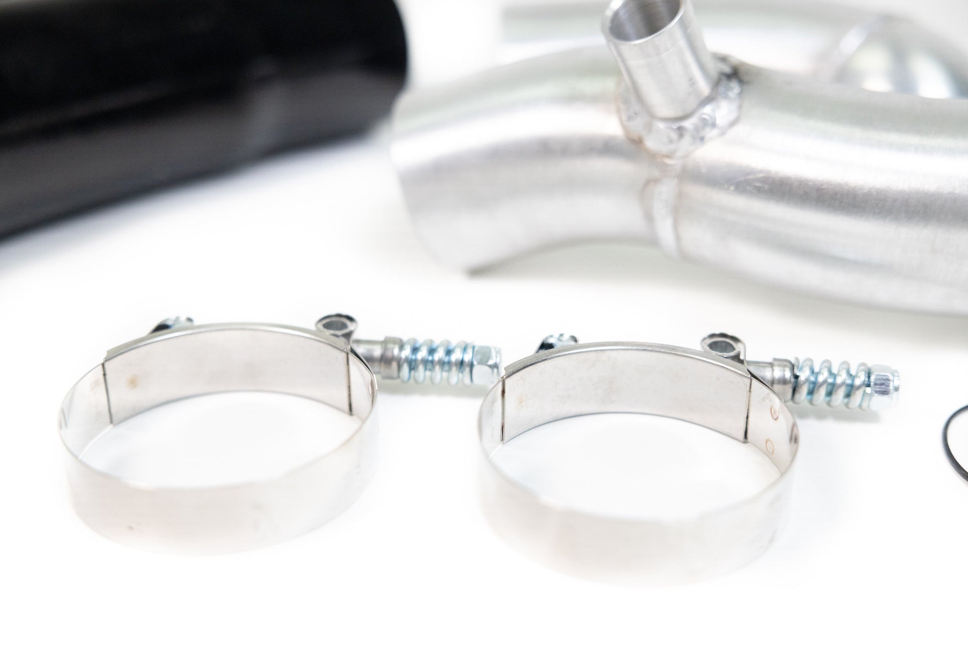 The machined inlet flanges transition to 63mm aluminum piping which extends all the way to the 6-Layer reinforced silicone couplers. These couplers are extra durable to prevent any deformation during induction on demanding builds.